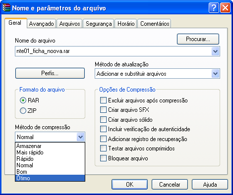 2º Nesse passo você vai escolher o método de compressão, normalmente escolhemos a opção ÓTIMA: