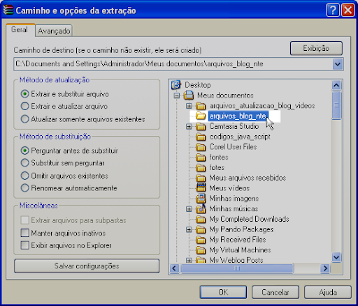 2º Você pode também escolher o destino do arquivo que irá ser descompactado: