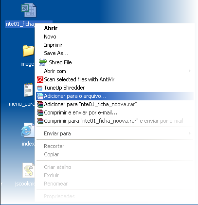 1° Clique com o lado direito do mouse em qualquer arquivo que você queira compactar, ou seja, reduzir o tamanho para caber em um disquete, pendrive ou CD.