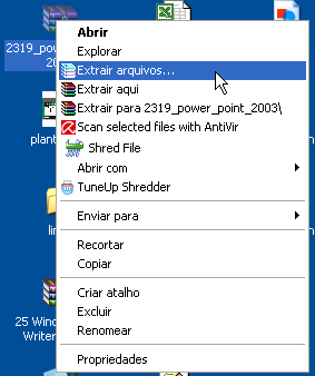 Descompactando arquivos com o WINRAR: